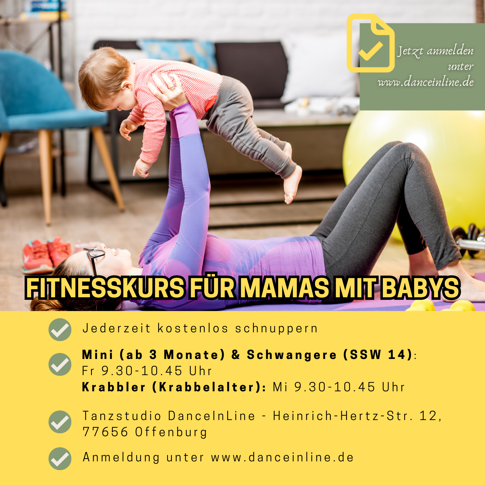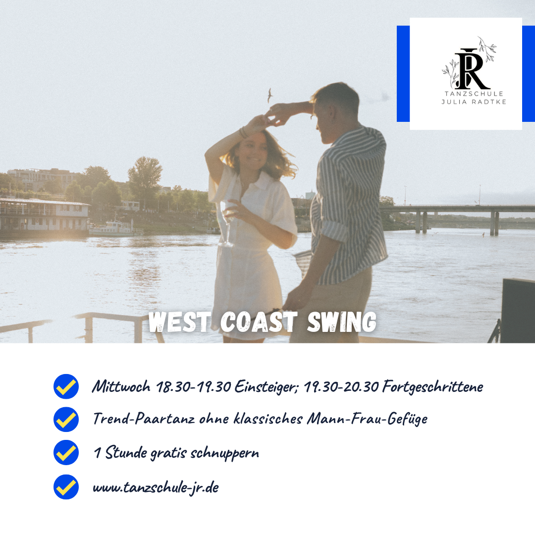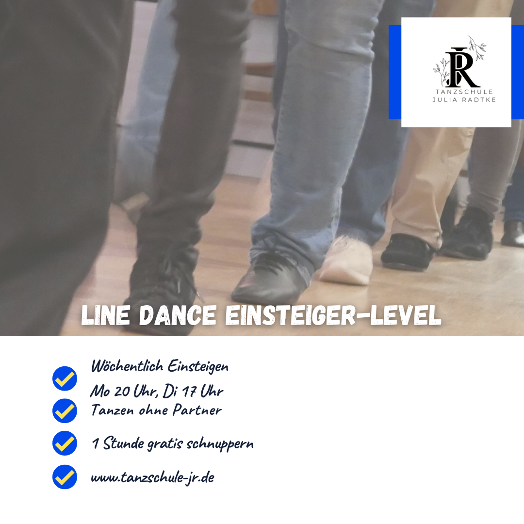 LINE DANCE In der musikalischen Vielfalt vereint der Line Dance in sich eine unglaublich große Spannweite an Elementen aus vielen verschiedenen Tanzarten. In ihm werden Bewegungen, Figuren, Schritte und auch rhythmische Grundlagen aus Standard, Latein, Jazz Dance, Irish Step, Bauchtanz, Breakdance und vielem mehr verwendet. Welche Elemente vorang haben ist ganz abhängig von Geschmack und Level der Tänzer. Seit 2002 ist der Line Dance ein eingetragener Freizeitsport und ist in ganz Deutschland und der Welt bekannt. Männer und Frauen gruppieren sich in Linien zusammen und tanzen eine eigens zum Lied geschriebene Choreographie. So tanzt man zwar für sich, aber niemals alleine. Es gibt: Line Dance für Anfänger, Fortgeschrittene und Senioren Kursplan Übersicht Offenburg - jetzt mitmachen.   Weitere Angebote der Tanzschule Julia Radtke   Mama Passion:Fitnesskurse für Mamas mit Babys & Schwangere   Werde fit nach der Geburt oder auch schon davor. Unsere spezielle Fitnesskurse sind auf die Bedürfnisse von Mamas mit ihren Babys und auch Schwangere angepasst. Sie sind Ergänzung zum Rückbildungskurs und stärken die innere Mitte, sowie die allgemeine Fitness Alle Kurse unter: Mama Passion in Offenburg Paartanz West Coast Swing Lernt den Trend- Tanz kennen und steigt in unsere Kurse für Einsteiger und Fortgeschrittene ein   Salsa Jetzt in unseren Salsa-Kurs für Fortgeschrittene einsteigen.   Alle Anmeldungen findet ihr unter www.tanzschule-jr.de/paartanz   Trainingsraum Offenburg Heinrich-Hertz-Str. 12 77656 Offenburg