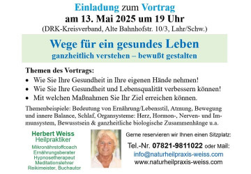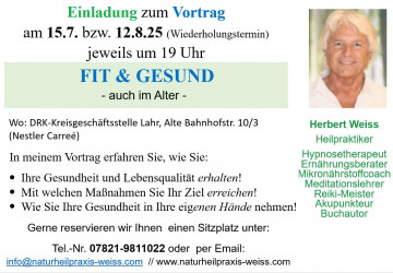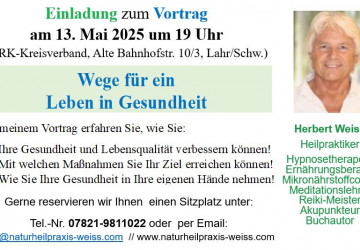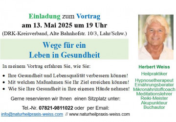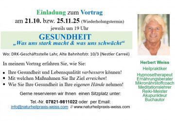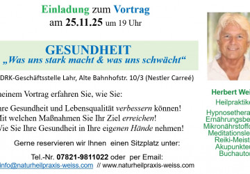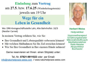 Vortrag "Medizinische Hypnoseanwendungen in der Heilpraktikerpraxis" am 10.03.2026 in Lahr (DRK/Nestlecarreé) um 19 Uhr